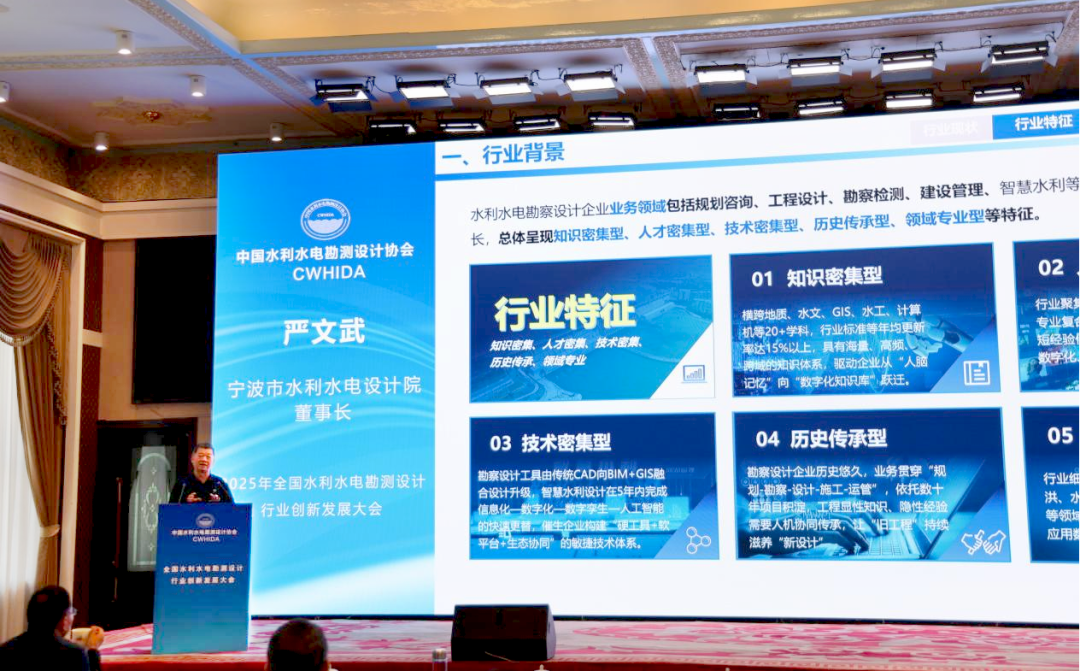 我院董事長(zhǎng)、院長(zhǎng)嚴(yán)文武在大會(huì)上作了《大模型賦能水利水電勘察設(shè)計(jì)企業(yè)數(shù)字化轉(zhuǎn)型》專題報(bào)告,系統(tǒng)分享了我院在人工智能大模型技術(shù)驅(qū)動(dòng)下,推進(jìn)企業(yè)數(shù)字化轉(zhuǎn)型的實(shí)踐路徑與成果經(jīng)驗(yàn)。