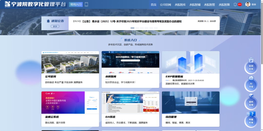 作為我院智慧水利研究院咨詢與解決方案部總監(jiān),張焱及其團(tuán)隊身處業(yè)務(wù)鏈條最前端,主導(dǎo)項目售前咨詢,精準(zhǔn)對接客戶需求,是我院在智慧水利領(lǐng)域的一線開拓者。從臺風(fēng)防御技術(shù)研發(fā)到省河湖庫數(shù)字化管理,從水利工程信息化設(shè)計到數(shù)智水院產(chǎn)品推廣,他始終緊貼政策前沿與業(yè)務(wù)一線,以專業(yè)為錨、以創(chuàng)新為帆,在江河湖海的治理藍(lán)圖上書寫智慧答卷。